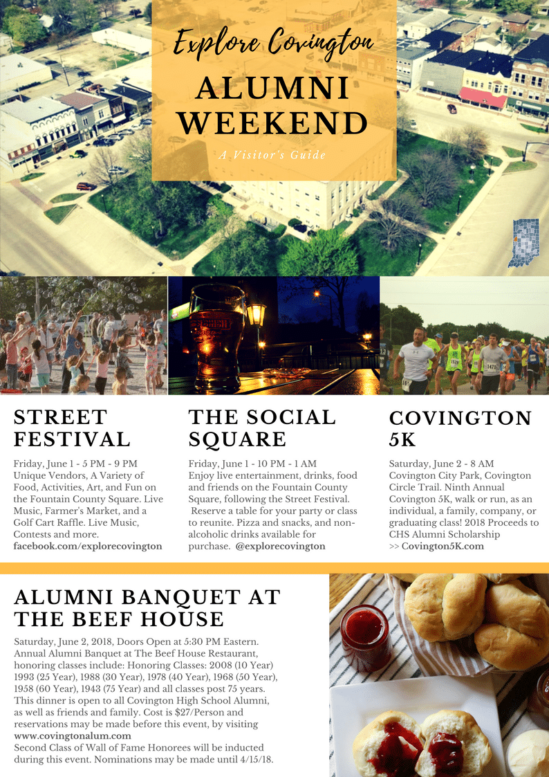 Downtown Covington Indiana, Fountain County Square beginning at 5:00 PM Eastern Time